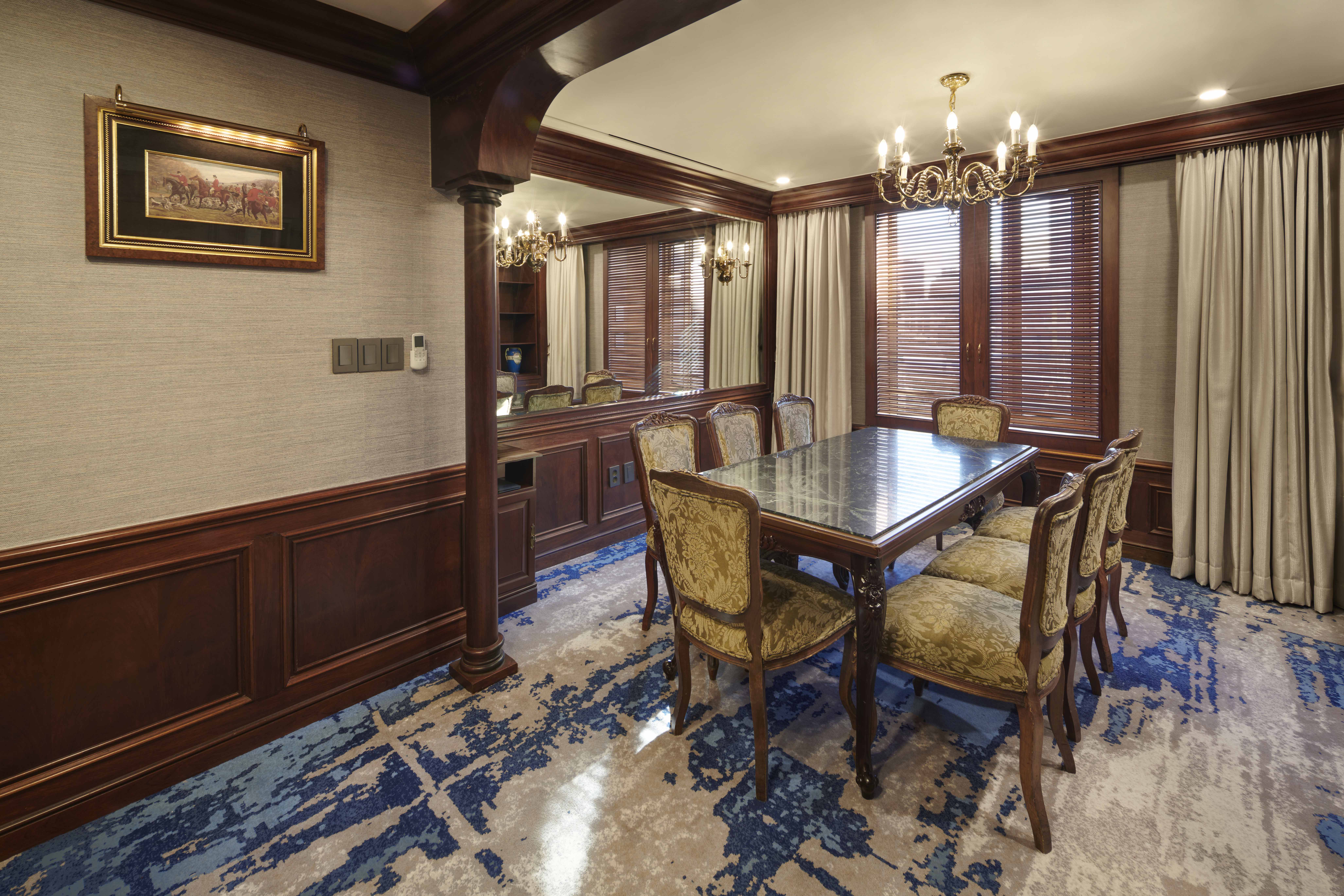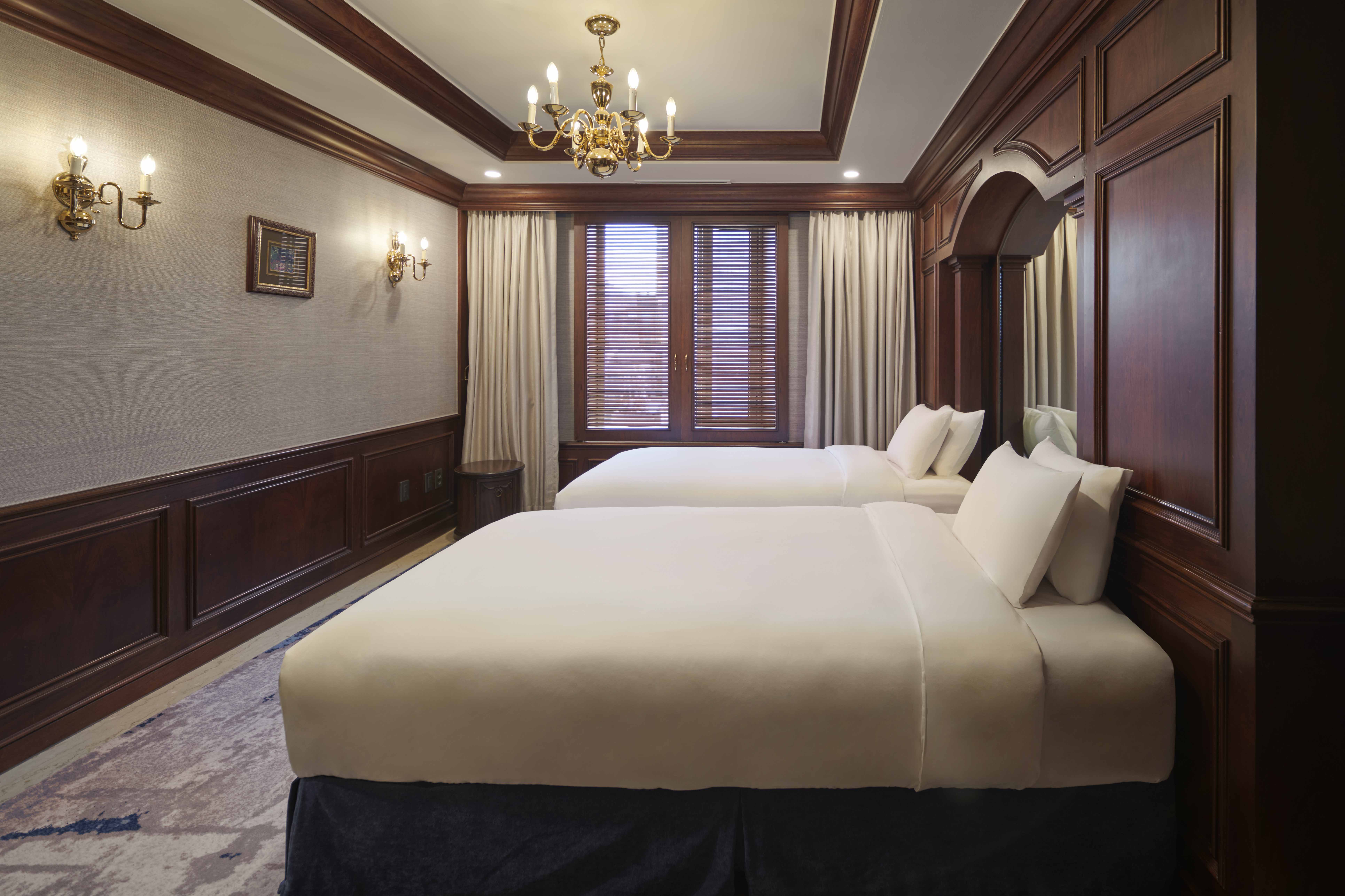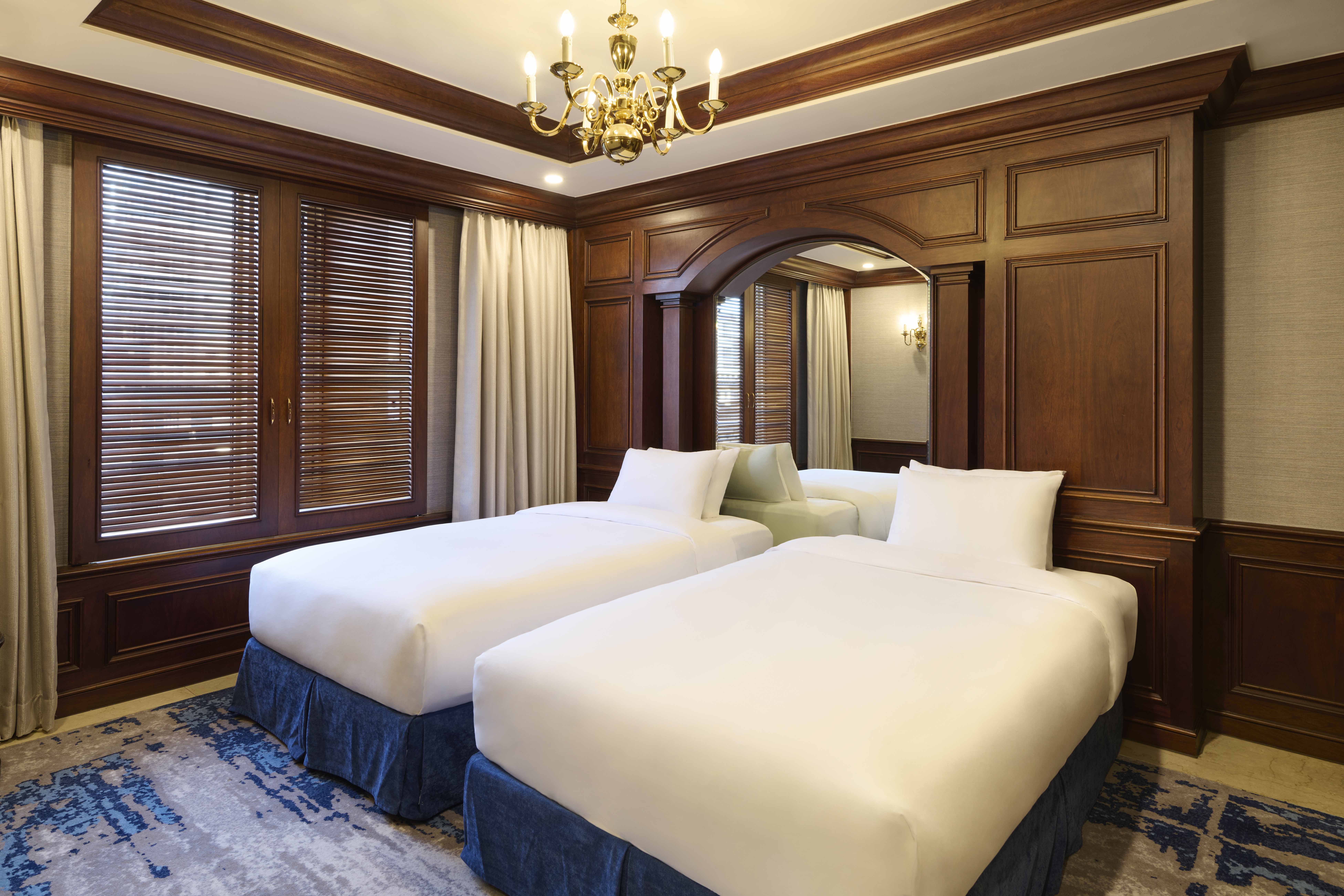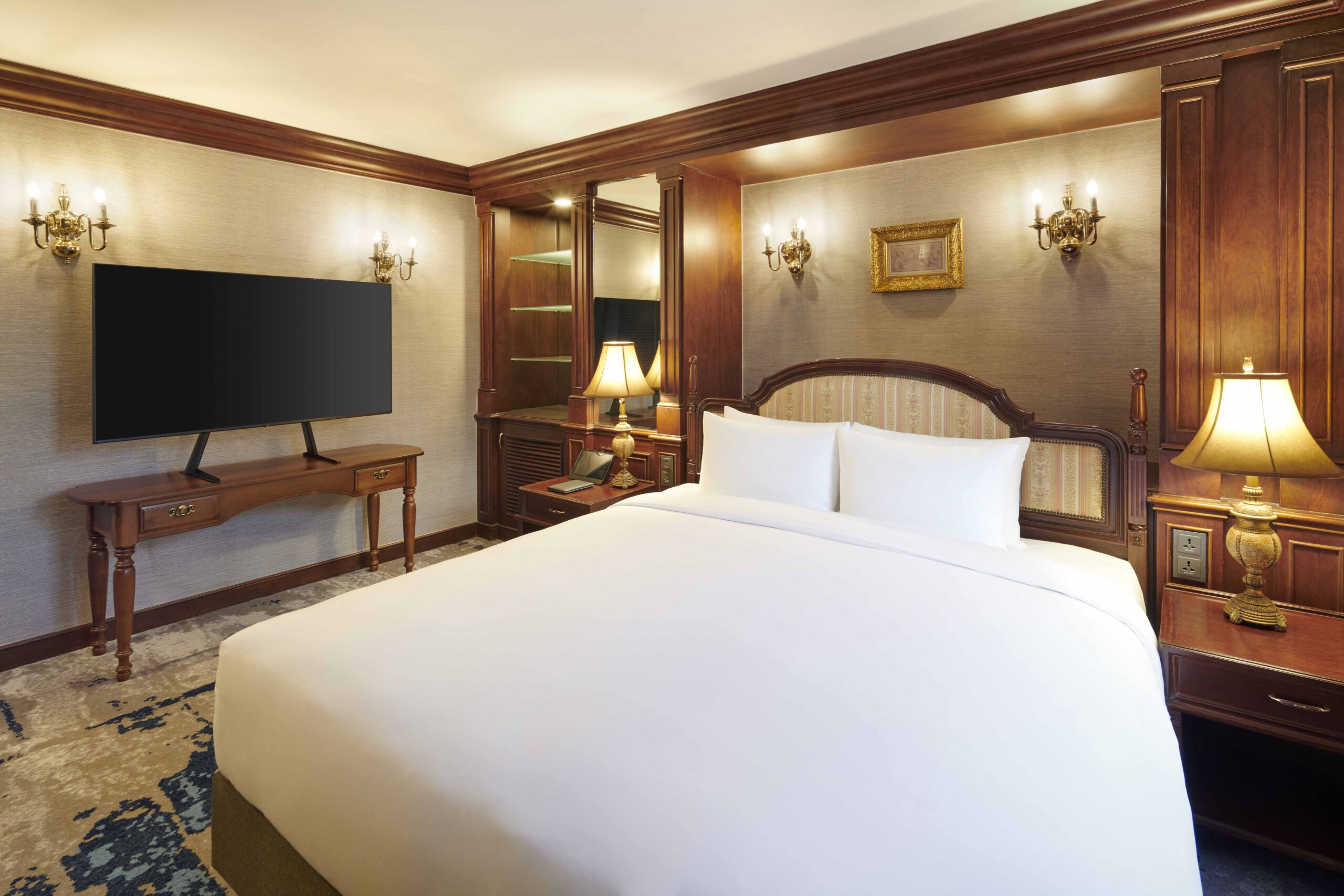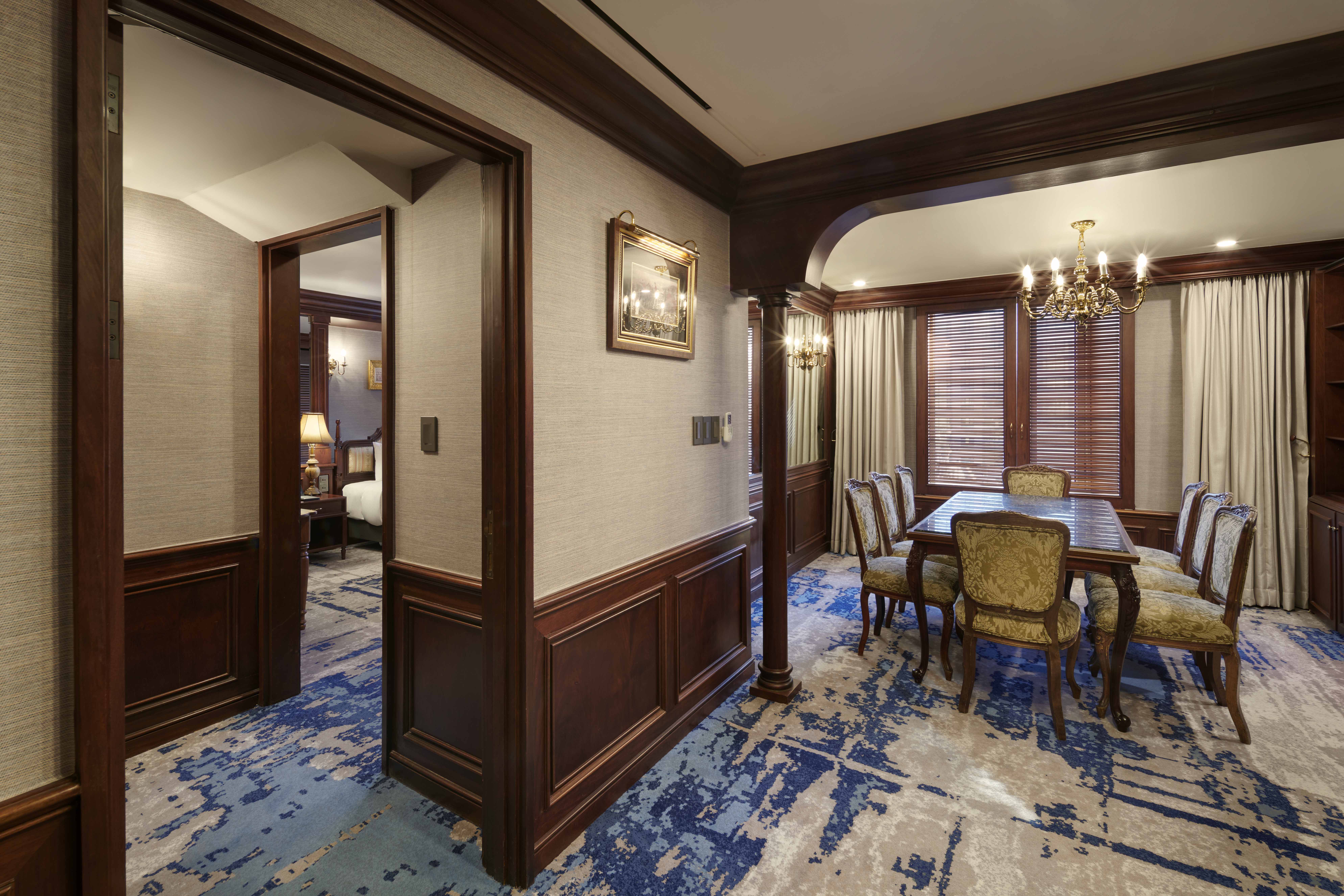 The Imperial Family Suite is the hotel’s one and only European-style penthouse, offering an iconic and spacious stay ideal for families or groups. Featuring two bedrooms with one king bed and two single beds, this suite comfortably accommodates up to four guests. The large living area includes a six-person dining table, while the bathroom provides both a shower booth and a bathtub for added comfort.