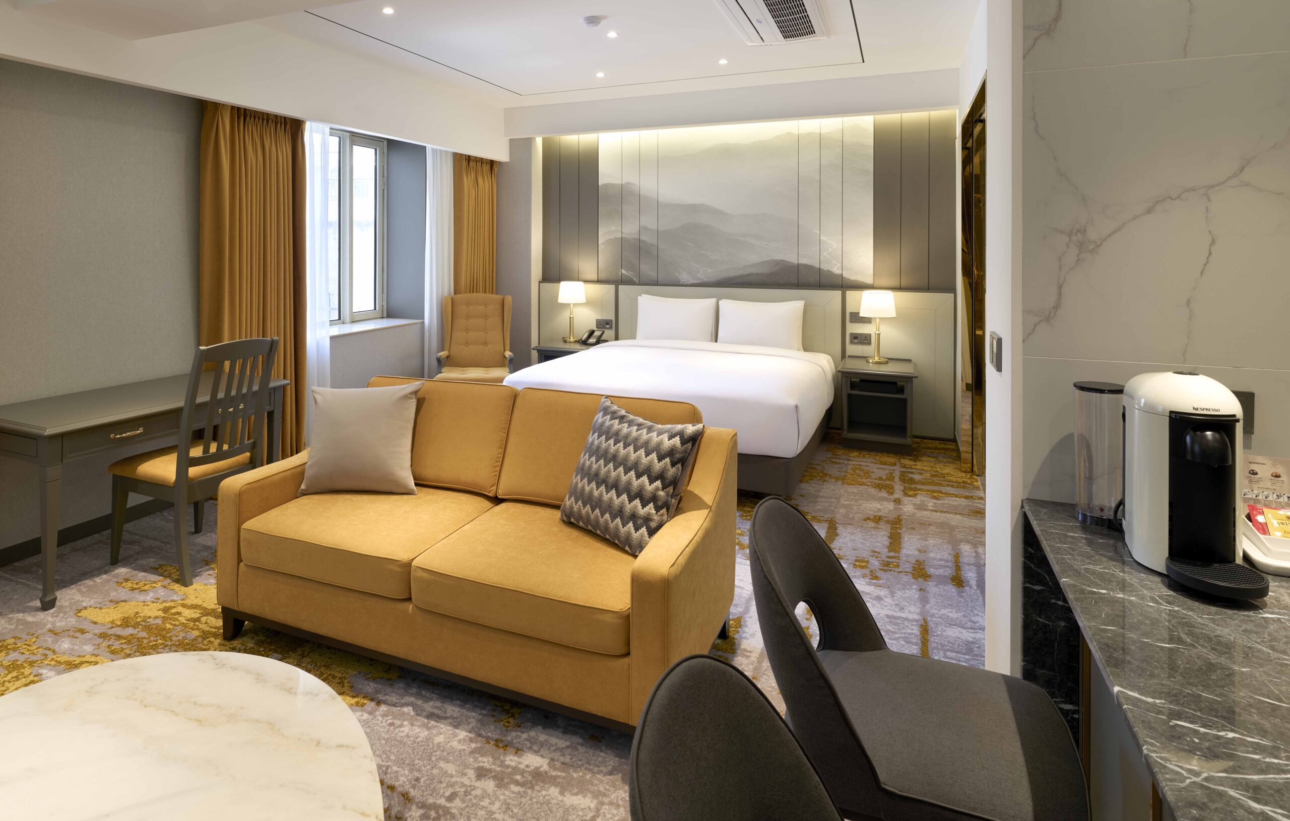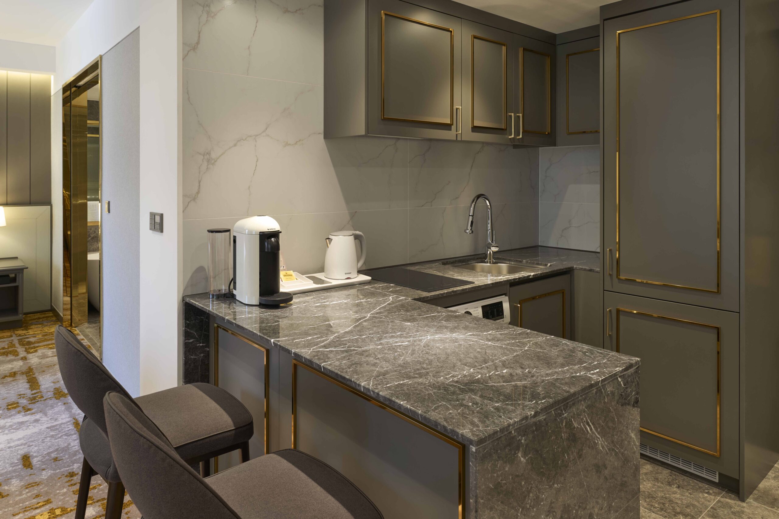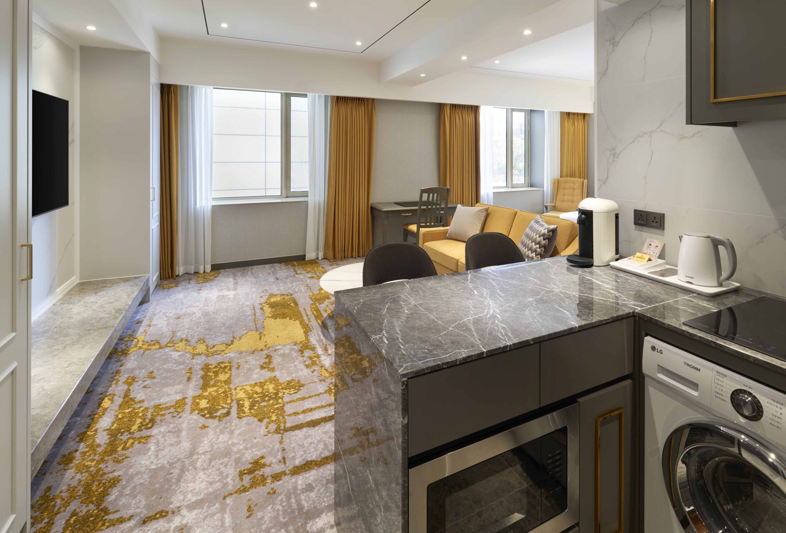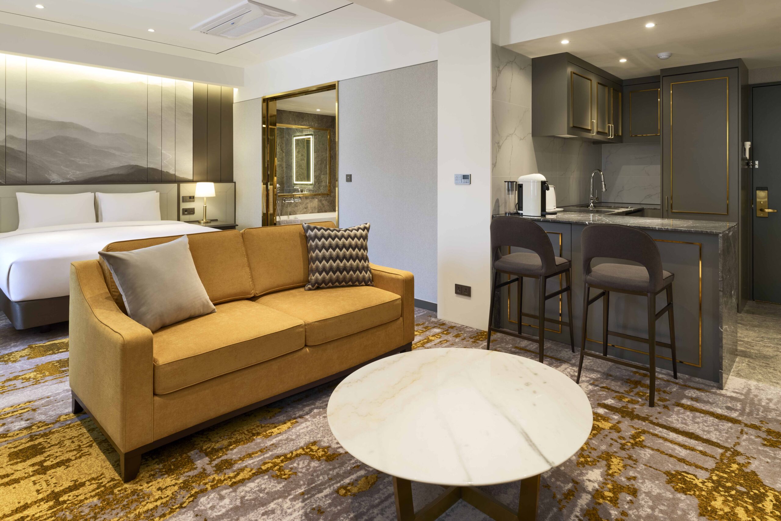 Relax and recharge in a recently renovated Residence Studio, a sophisticated urban retreat designed for the modern traveler. This apartment-style sanctuary provides the perfect blend of elegant styling and practical functionality within an open-plan layout, creating a refined sense of spaciousness and urban charm.